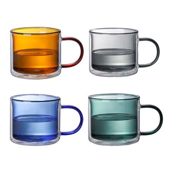 250Ml hanno colorato il bicchiere di vetro a doppia parete della tazza delle tazze di caffè del borosilicato con la maniglia