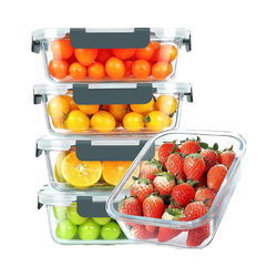 Moderna scatola per pasti in vetro borosilicato resistente al calore con elegante coperchio a scatto per la conservazione quotidiana degli alimenti e il pranzo in cucina